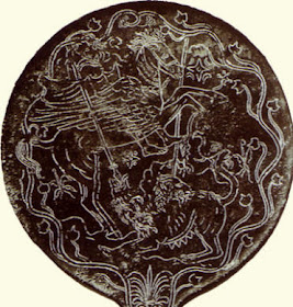 Riding Pegasus, Bellerophon rose above the Chimera and introduced the leaded tip of his javelin between the jaws of the monster who caused her own death, because, as soon as she vomited fire, the lead melted and dripped down her throat.